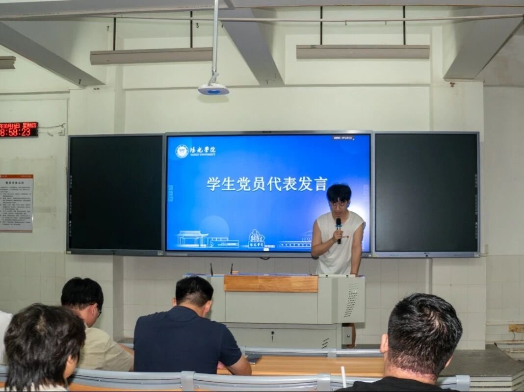 学生党员代表陈文豪在发言中强调,在本科教育教学审核评估期间,全体学生党员需从三方面发力:一是筑牢思想政治站位,将迎评工作与个人成长、学校发展紧密结合;二是强化责任担当意识,不推诿、不敷衍,认真做好每一项工作;三是凝聚团队力量,积极联动同学,以点带面推动迎评工作落地见效。
