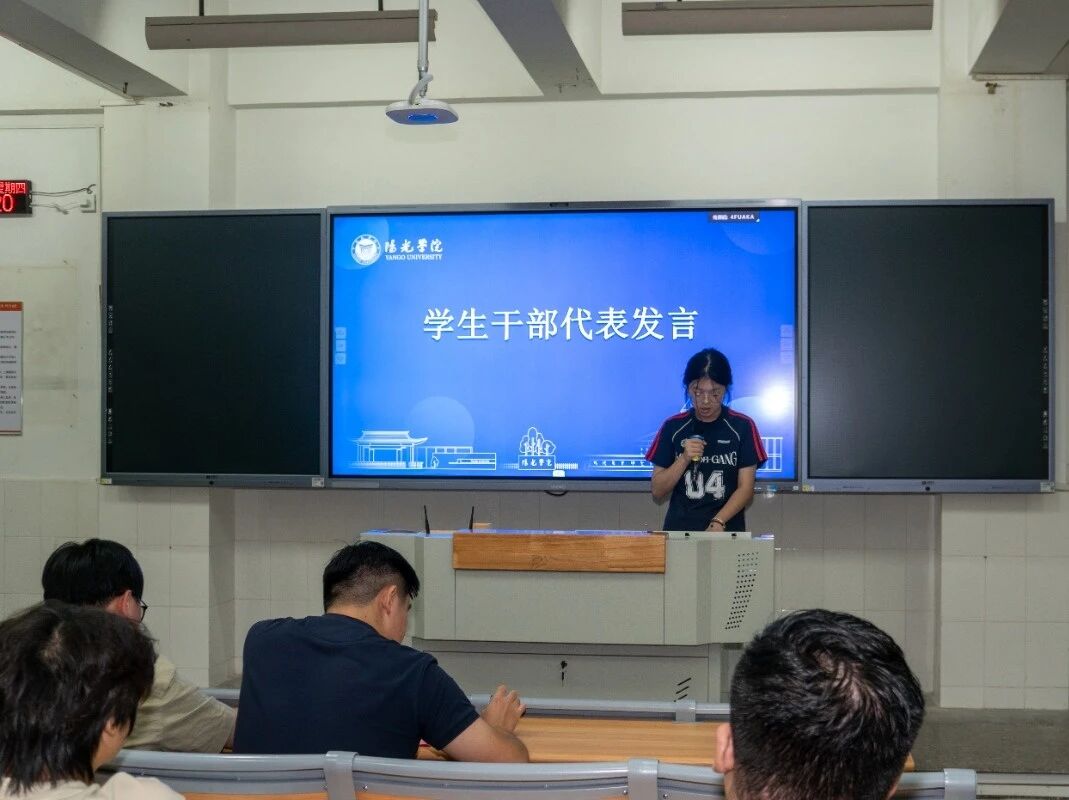 结合本科教育教学审核评估的核心要求,学生党支部书记温志祥老师在讲话中提出,学生干部要做思想的引领员、行动的示范员、师生的联络员,从自身做起,带头遵守校规校纪,积极参与课堂教学与校园文化活动,以高度的责任感和使命感投身迎评工作,以实际行动影响和带动身边同学共同营造良好的学习氛围。学生干部代表陈育在分享中倡议,全体同学要以迎评为契机,在课堂上专注投入,认真参与课堂互动,展现良好学风;在实践中主动作为,积极参与南岩村、讲好船政故事等实践活动,以实际行动为学校本科教育教学审核评估工作贡献力量。